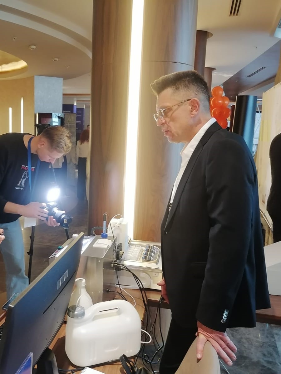 Коллектив ООО Технологика (входит в ГК ООО НПП "Лабораторика", ООО "Сибагропартнер", ООО "Технологика") демонстрирует на международном форуме "PRO Молоко" Автоматизированный измерительный комплекс на базе анализатора молока «Эксперт Супер Плем - 02» (автосэмплер) для определения физико-химических параметров.