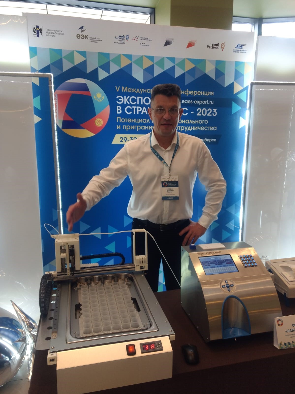 Коллектив ООО Технологика (входит в ГК ООО НПП "Лабораторика", ООО "Сибагропартнер", ООО "Технологика") демонстрирует на международной выставке АГРОС опытный образец комплекса роботизированной подачи и автоматической подготовки образцов молока и молочных продуктов для определения физико-химических параметров.